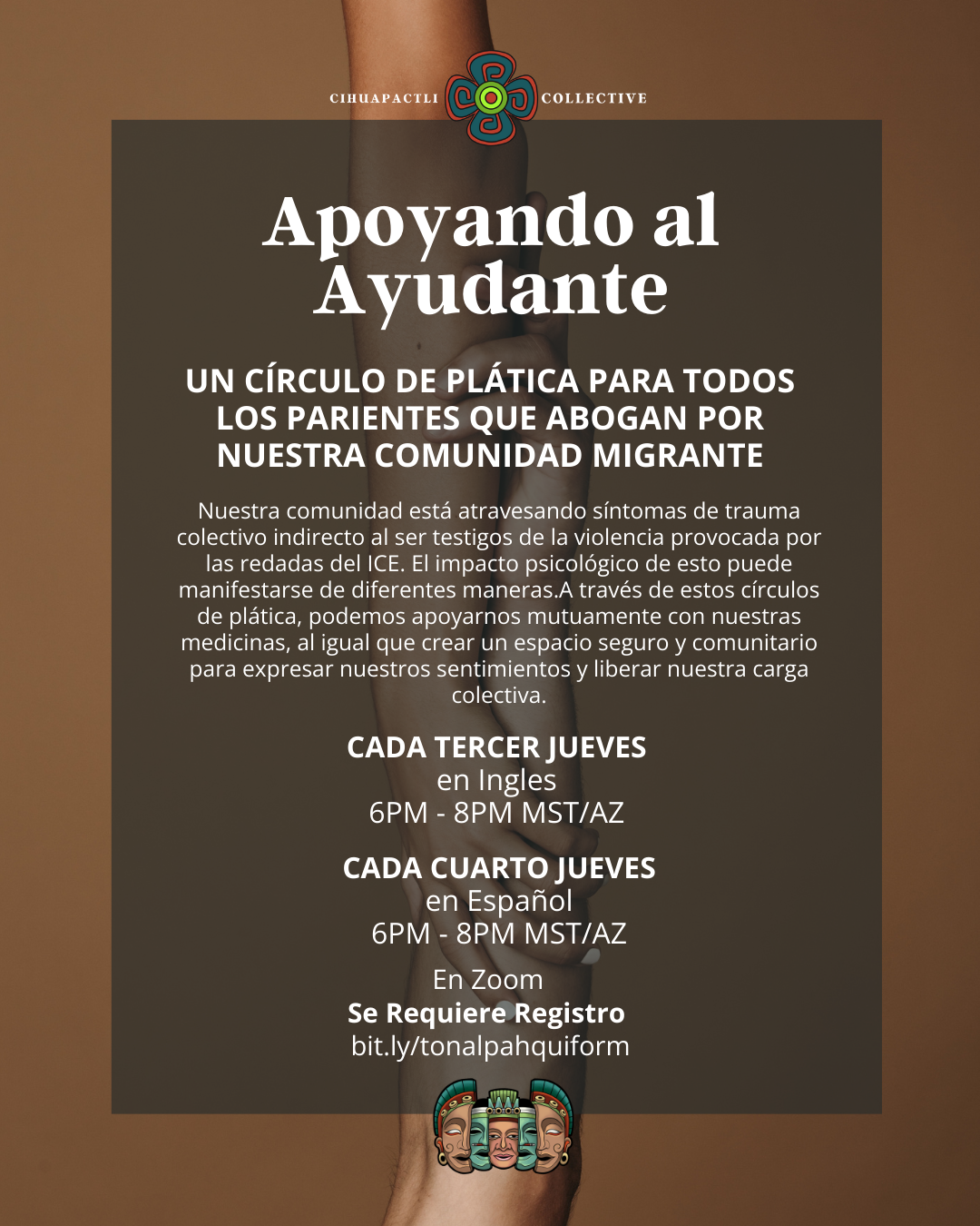 Nuestra comunidad está atravesando síntomas de trauma colectivo indirecto al ser testigos de la violencia provocada por las redadas del ICE. El impacto psicológico de esto puede manifestarse de diferentes maneras.A través de estos círculos de plática, podemos apoyarnos mutuamente con nuestras medicinas, al igual que crear un espacio seguro y comunitario para expresar nuestros sentimientos y liberar nuestra carga colectiva.